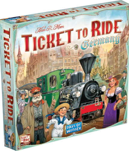 17-piece railroad play set with wooden storage case that unfolds to create playing surface with built-in tracks.