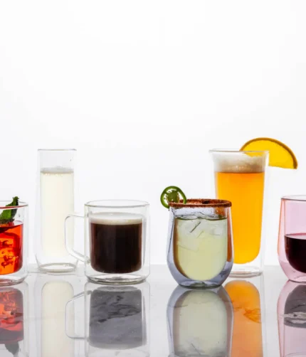 Set of 2 elegant stemless flute glasses for champagne and sparkling wines.