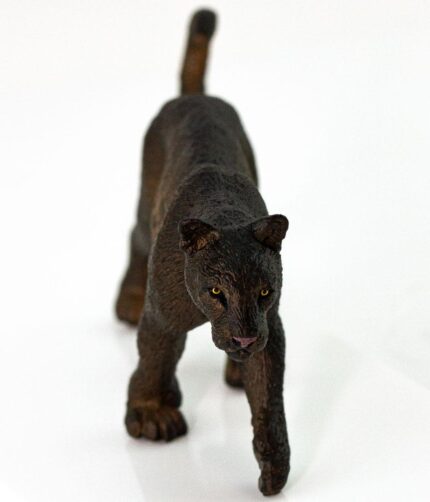 This accurate and detailed black panther toy is on the prowl, with its eyes focused and its paw stepping forward in mid-stalk.