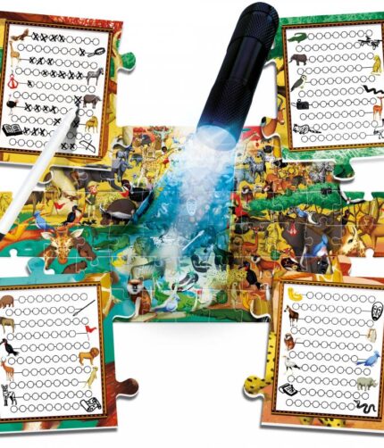A 70-piece puzzle for children aged 5-10 that includes dry-erase checklists and a UV light.