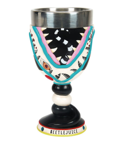 A decorative goblet featuring a sandworm theme from the movie Beetlejuice, perfect for collectors and fans alike.