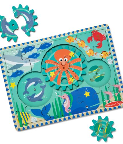Engaging 18-piece underwater jigsaw puzzle with 3 interlocking gears that spin.