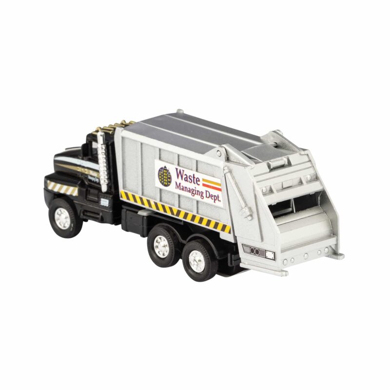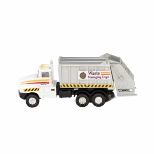 Schylling’s Diecast Sanitation Truck is made with real metal and powered by a pull back motor. Scale 1:43 and 6 inches long.
