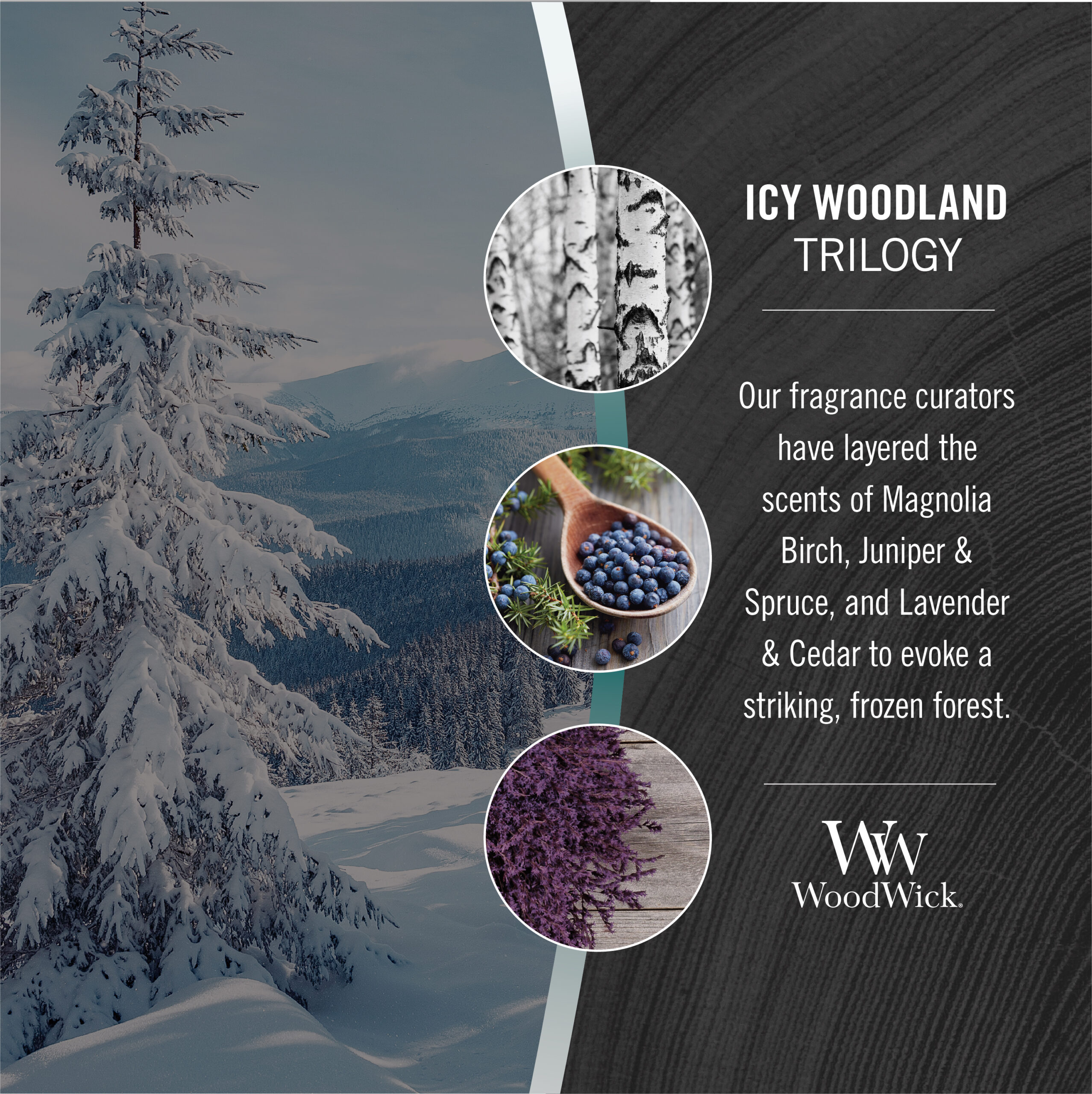 Our fragrance curators have layered the scents of Magnolia Birch, Juniper & Spruce, and Lavender & Cedar to evoke a striking, frozen forest. Fragrance layers, top to bottom: Magnolia Birch: A smooth yet bracing fragrance blend of magnolia leaf, white birch, and winter moss; Juniper & Spruce: Juniper berry, blue spruce, and frosted sage perfectly balanced with soft notes of tuberose and cedar; Lavender & Cedar: Pink pepper and aromatic lavender are layered with sage flower, patchouli, and blonde woods.