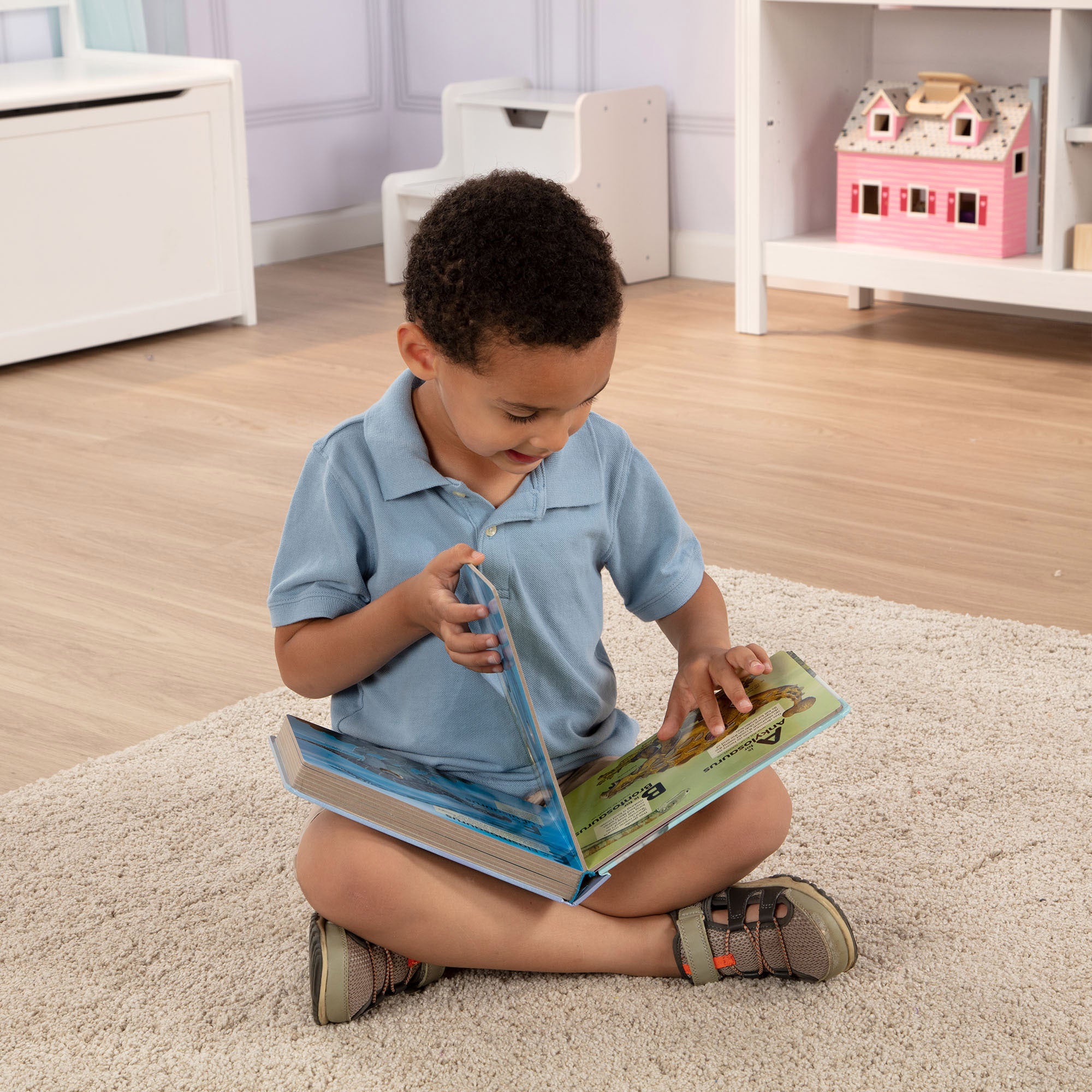 10-page interactive sturdy board book with buttons to press and ‘pop’ on every page. Encourages language development, color recognition, and fine motor skills.