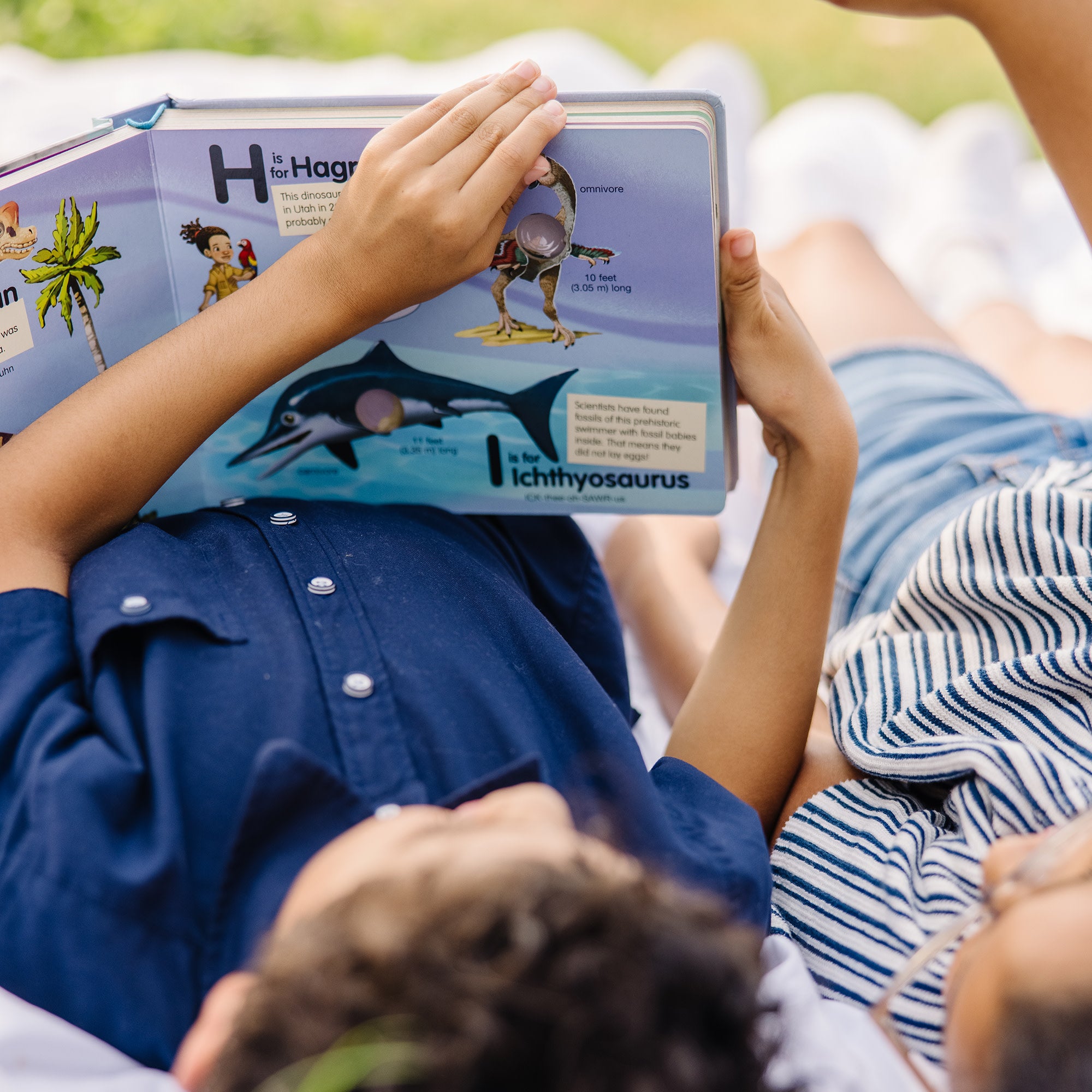 Get ready for some DINO-mite fun! Poke the irresistible click-to-count buttons to hear satisfying “clicks” and “pops” as you learn about dinosaurs from A to Z! This sturdy 20-page interactive board book invites kids to pop along as they discover the amazing world of dinosaurs and learn fun facts along the way. Poke-a-Dot® books help encourage language development, counting, and fine motor skills. Patented Pop-a-Tronic™ technology lets kids discover different popping sounds by poking the dots from the front or the back, with pages raised or flat! This product is certified by the Forest Stewardship Council. FSC certification ensures that products come from responsibly managed forests that provide environmental, social, and economic benefits, and that forests are protected for future generations. Please note that FSC certification applies to new inventory only (FSC C156584).