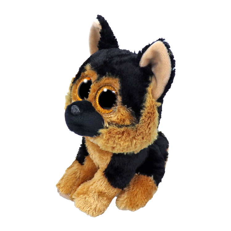 Plush dog body made with super soft Ty Silk fabric. Sparkly gold Beanie Boo eyes. Black and brown silky fur coat. Includes official Ty Heart with birthday and poem. Surface clean only. Clip: 5 inches, Small: 6 inches, Medium: 13 inches, Large: 16 inches.