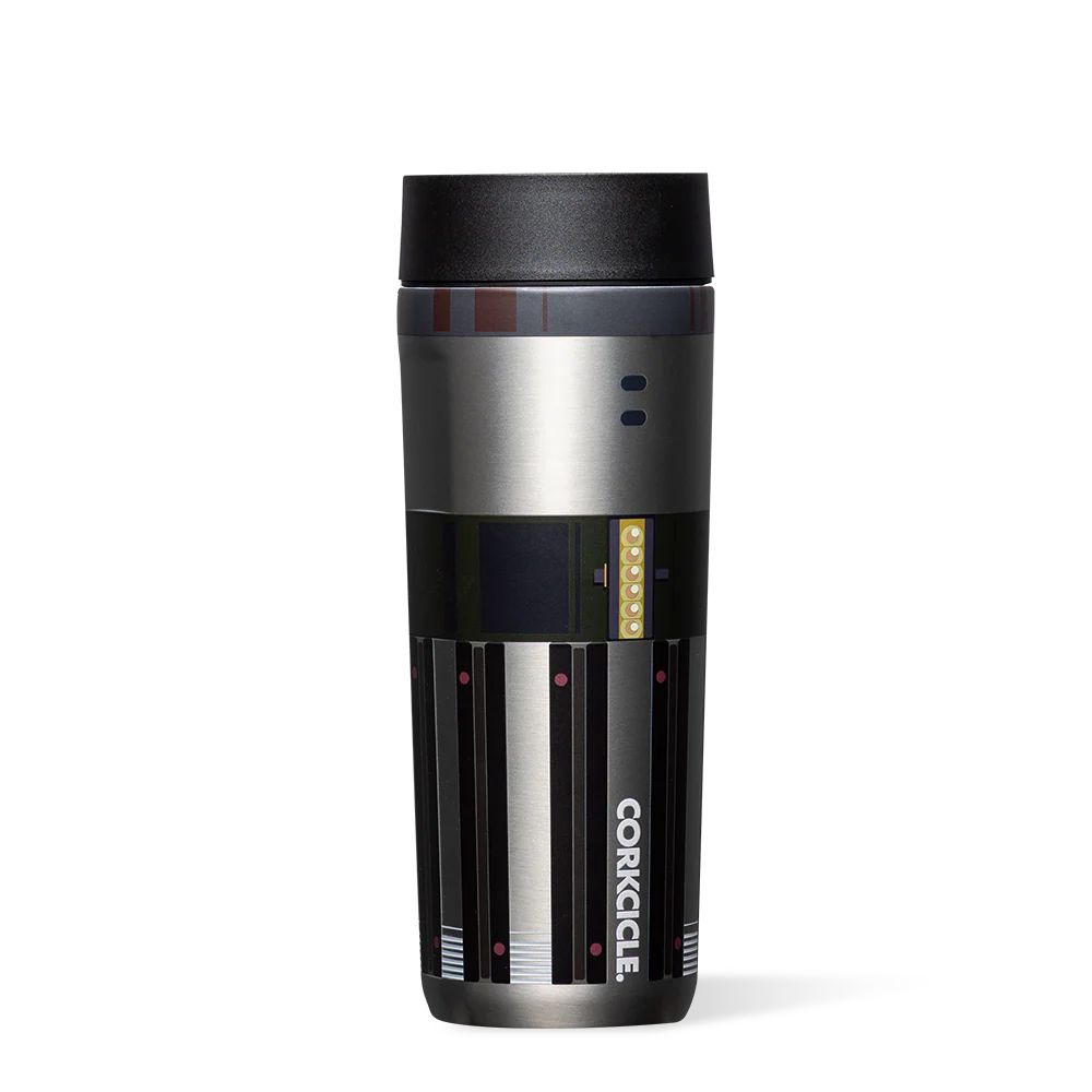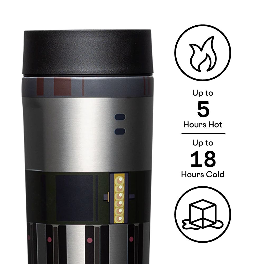 A stylish commuter cup featuring iconic Star Wars design, perfect for coffee lovers.