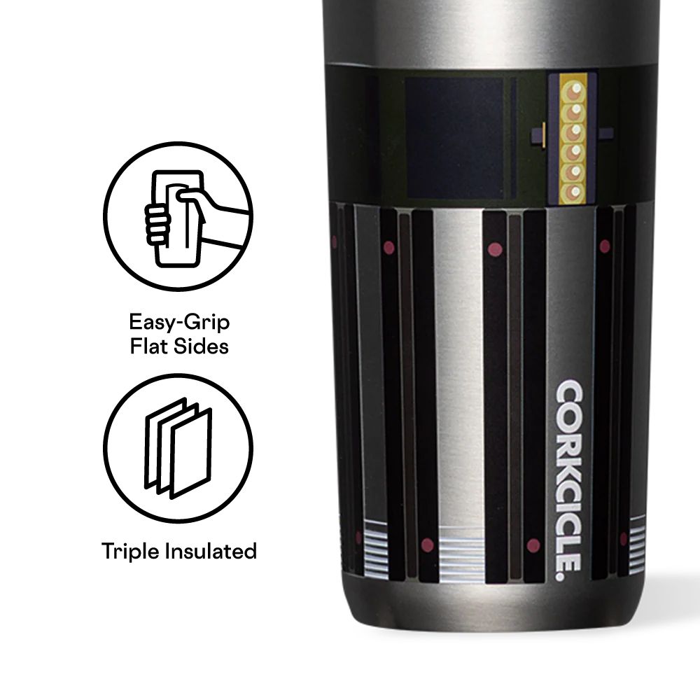 Stainless steel cup inspired by Star Wars, designed to keep your drinks hot or cold. Features a spill-proof lid and a sleek design, perfect for on-the-go.