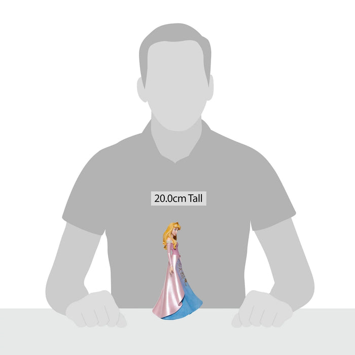 Princess Aurora from Sleeping Beauty showcases her vibrant couture with velvet and satin finishes and metallic gold accents. Part of the Disney Couture de Force collection from Enesco.