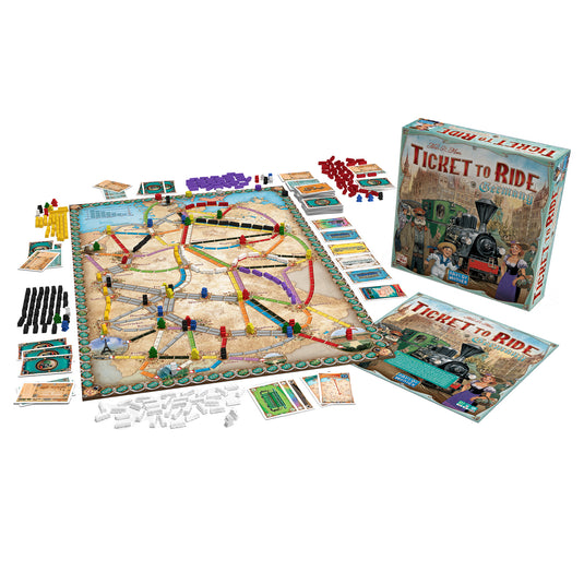 Discover Ticket to Ride: Germany, a new standalone board game in the Ticket to Ride series! Players will build their own rail network across a beautifully illustrated board of Germany at the close of the 19th century. The game introduces a new and exclusive passengers rule and includes short and long Destination Tickets, making it a simple and elegant variant with new challenges for both newcomers and veterans.
