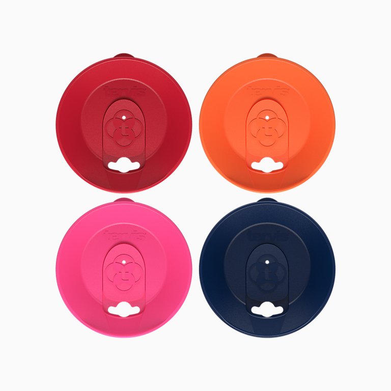 Travel Lids for 16oz Tumbler – Pack of 4. Available in Red, Orange, Fuchsia & Navy colors.