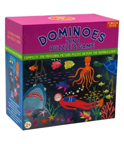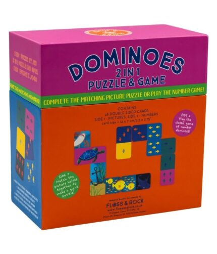 Double-sided dominoes with pictures and numbers. Includes reusable carry case. Perfect for ages 3+!